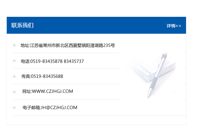 地址:常州市新北區友邦商務大廈1幢16、17層  電話:0519-85101652  傳真:0519-85112595  郵編:213022  網址:www.cz-jiayue_cn.shenshi-tie.com  郵箱:xiajifengaa@163.com